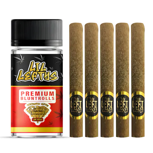 Left Coast rolls out big flavor in small form with their Lil Leftys Infused Blunts in Strawberry Banana, a 5-pack of potent mini blunts totaling 6.5g. Each 1.3g blunt blends premium indoor flower with liquid diamonds, live resin, and a heavy dusting of kief, all wrapped in a smooth-burning hemp leaf and finished with a spiral filter for easy airflow. The Strawberry Banana strain (Bubble Gum x Banana Kush) delivers a fruit-packed experience—think sweet berry and tropical banana smoothie—with effects that start euphoric and creative, then ease into full-body relaxation. Expect a mellow, giggly high that’s perfect for kicking back in Dyker Heights, Brooklyn or cooling out after sunset in Dongan Hills, Staten Island.