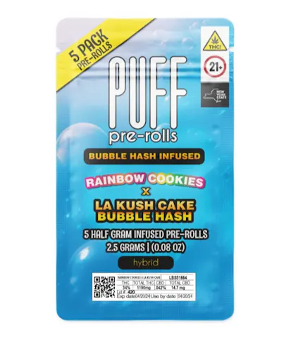 PUFF - Pack 5ct. Infused Pre Rolls - 2.5g - Rainbow Cookies x LA Kush Cake Bubble Hash was found with another offer. Check them out!