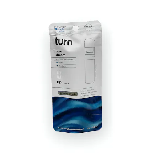Turn energizes your session with their TurnPod Botanica Blends Reload in Blue Dream, a 1g sativa pod crafted for the Turn Reload system. This classic strain bursts with sweet blueberry flavor layered over herbal and citrus undertones, delivering a smooth, aromatic inhale. Known for its uplifting, creative high, Blue Dream provides a clear-headed cerebral buzz with gentle body relaxation—perfect for daytime productivity or inspired afternoons in Bay Ridge, Brooklyn or Clifton, Staten Island. Designed for consistent, terpene-rich draws, this pod keeps flavor and potency locked in from the first hit to the last.